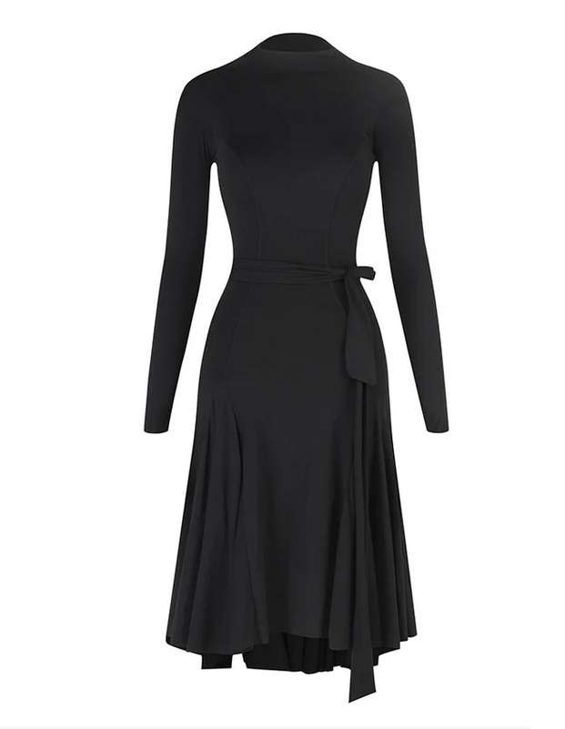 Abito 25054 Nero : Abito Leopardato dalla linea morbida con drappeggio a balze in fondo, intraccio sul retro e cinta morbida in vita.