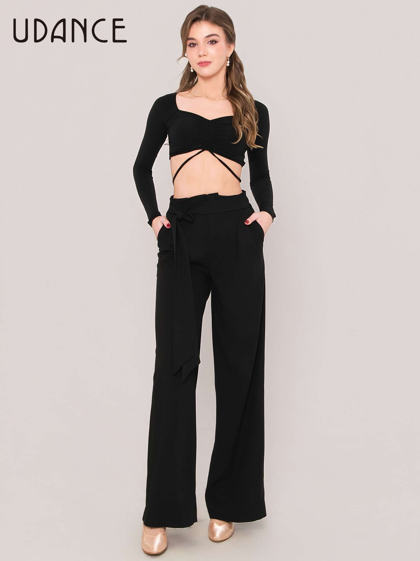Eleva la tua performance con il nostro pantalone da allenamento, progettato per la ballerina di danze standard che cerca il perfetto equilibrio tra stile sofisticato e massima libertà di movimento.